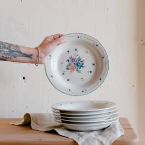 Je vous propose une catégorie d’assiette esprit « mais de campagne » plutôt vintage classique. Ce sont souvent des séries d’assiettes creuses, plates ou à dessert de célèbre faïencerie. On retrouve principalement des Motifs floraux, ou des paysages ou encore des liserés or ! On retrouve ici parfois de jolis lots d’assiettes anglaises avec de sublimes paysages -> les couleurs de chacune sont toujours authentiques (Luneville – Badonvilliers , Longwy…)