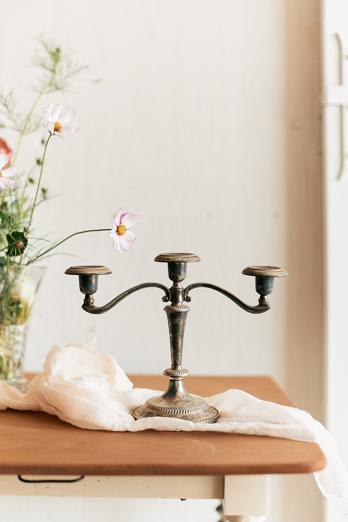 Chandelier en métal trois branches. Pièce décorative qui sera un atout charme sur une 29,8 / table