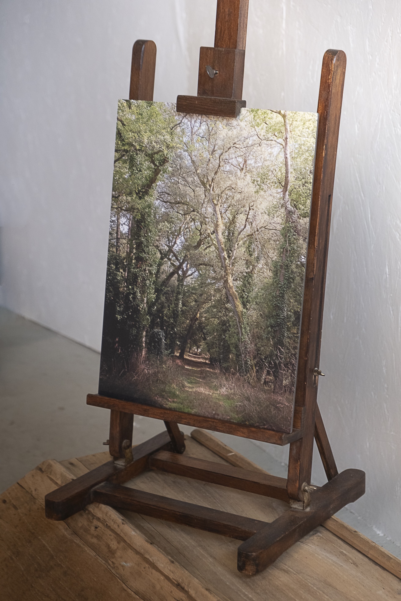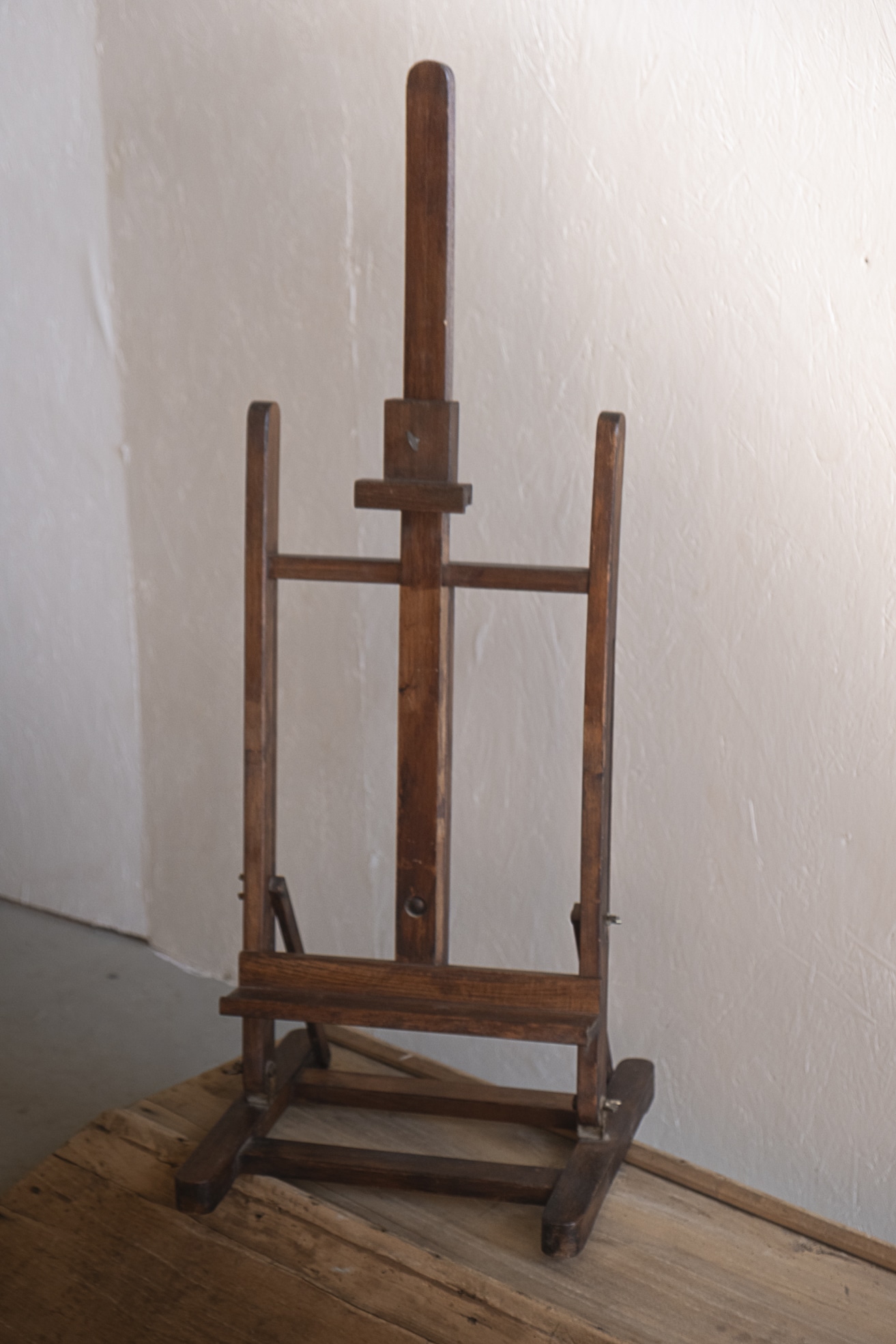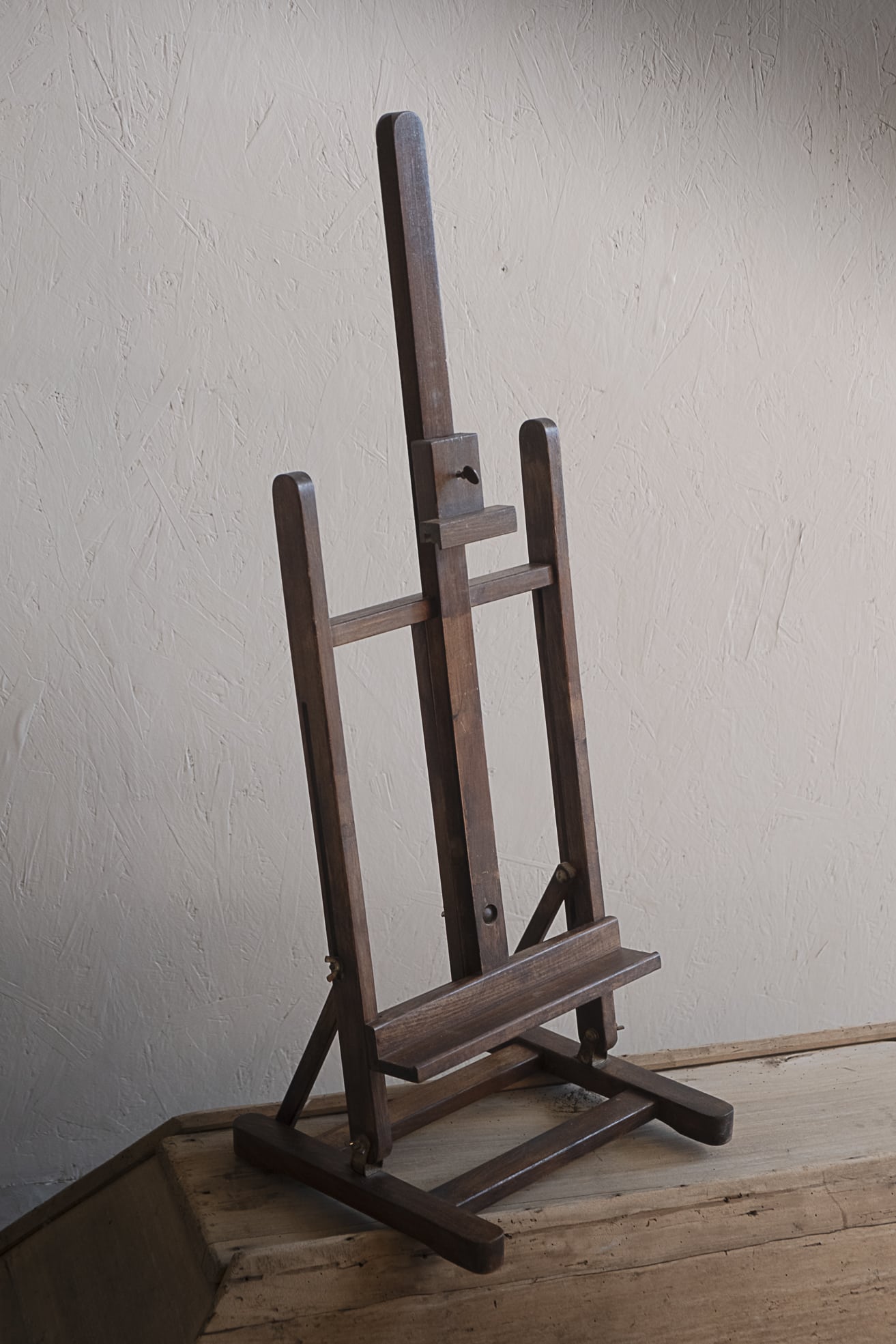 Très beau chevalet en bois foncé, de grande taille. Sa structure solide et sa teinte profonde lui donnent beaucoup de caractère et une belle présence.