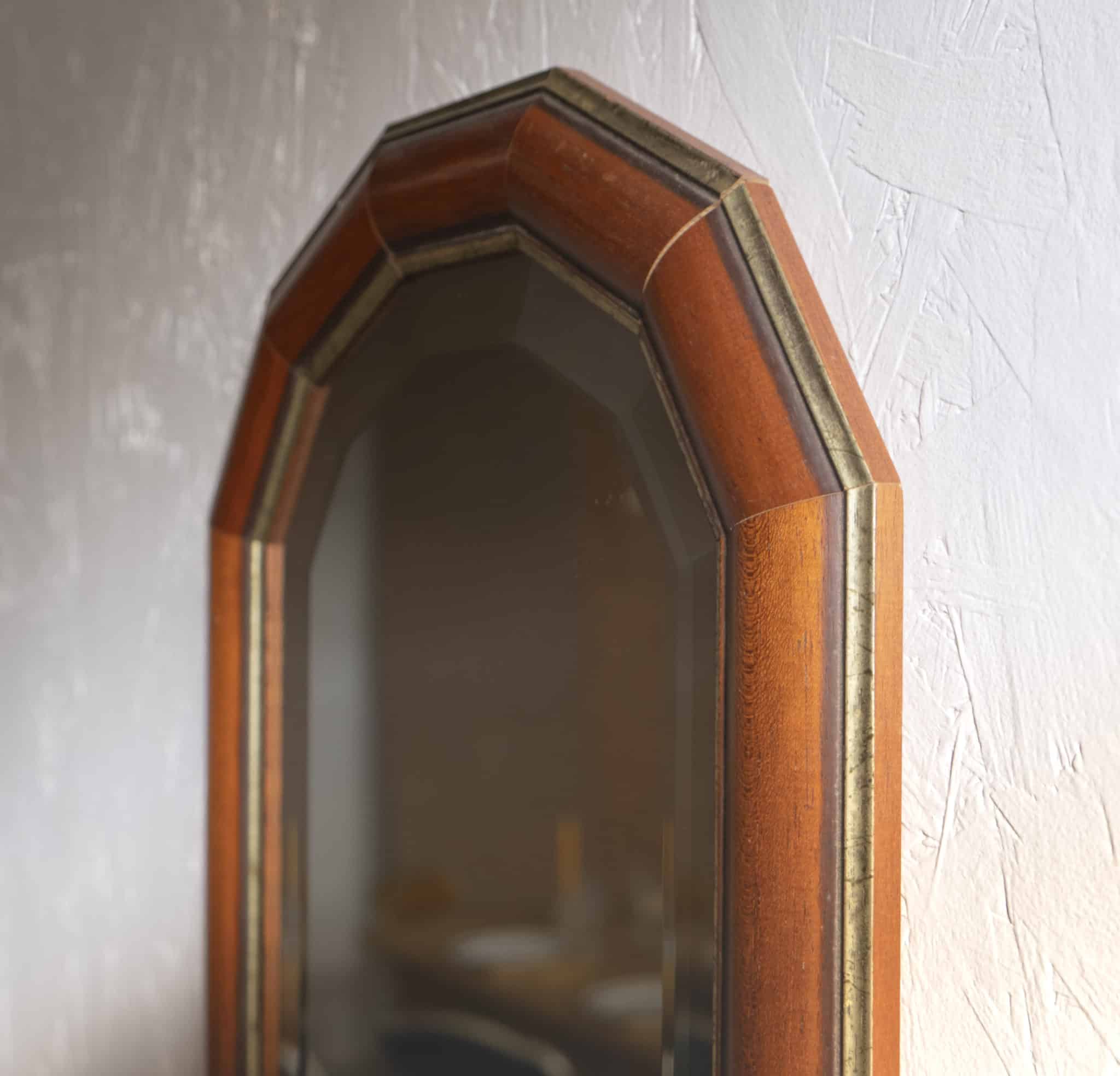 Superbe grand miroir vintage de style classique, à la présence forte et élégante. Son pourtour en bois est sublimé par un joli liseré doré, apportant beaucoup de raffinement et de douceur à l’ensemble.