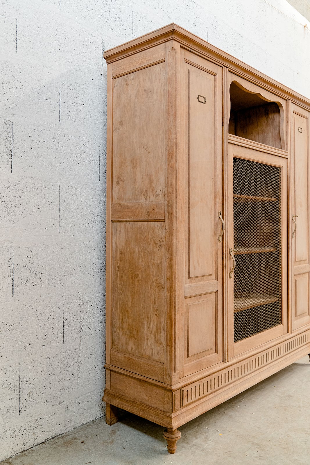 Coup de cœur pour cette ancienne armoire que j’ai entièrement rénovée et traitée. J’aime beaucoup son grillage doré qui donne un côté garde mangé très maison de campagne.
