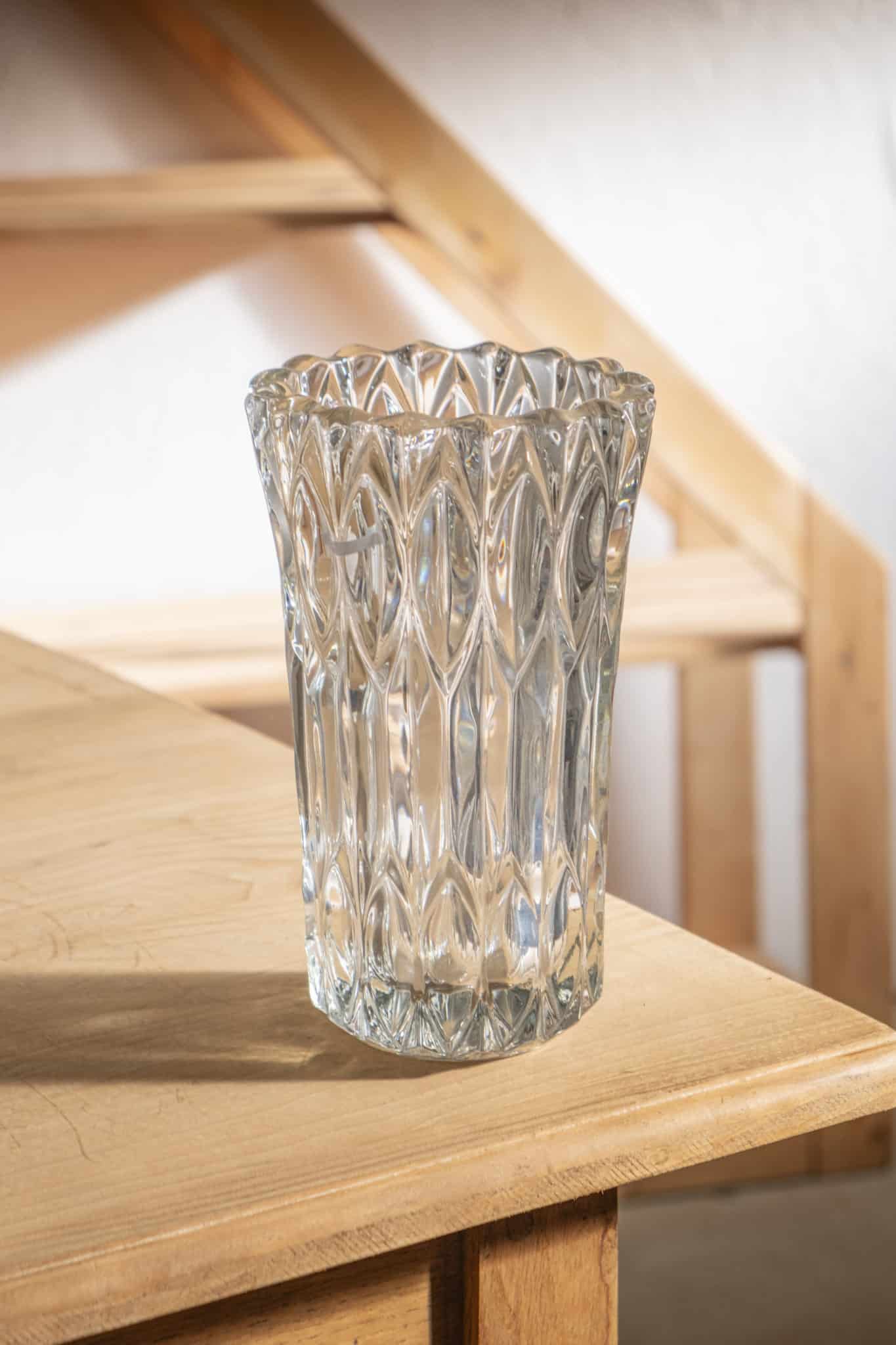 Ce grand vase en verre blanc ciselé séduit par sa présence élégante et ses motifs délicatement travaillés. Les ciselures captent la lumière et donnent du relief au verre, créant de beaux jeux de reflets. Posé seul ou garni de fleurs, il devient une pièce forte, à la fois décorative et intemporelle, inspirée des vases d’antan.