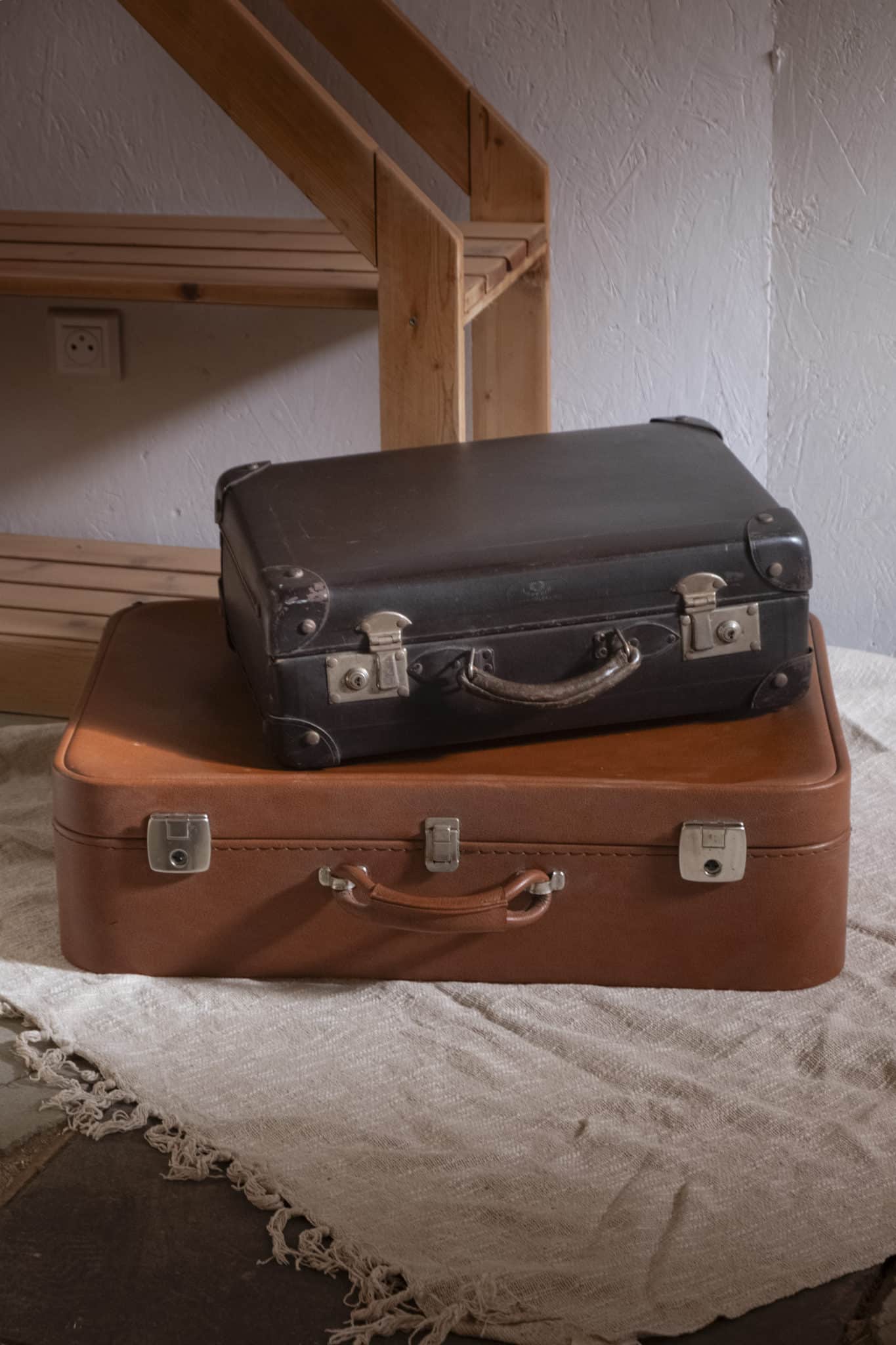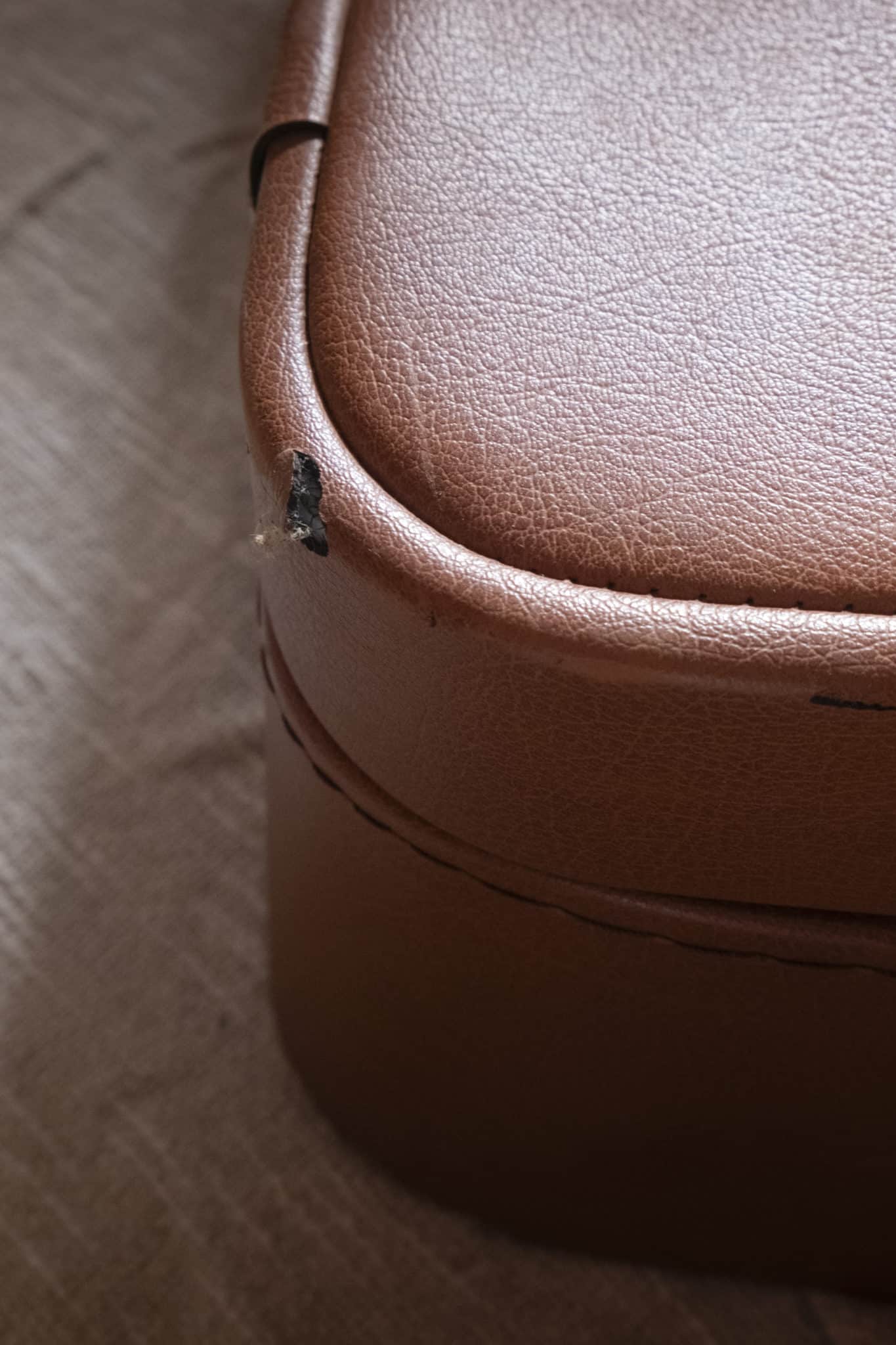 À l’extérieur, la valise présente quelques petits défauts, discrets et cohérents avec son âge, qui n’enlèvent rien à son charme et témoignent de son histoire.