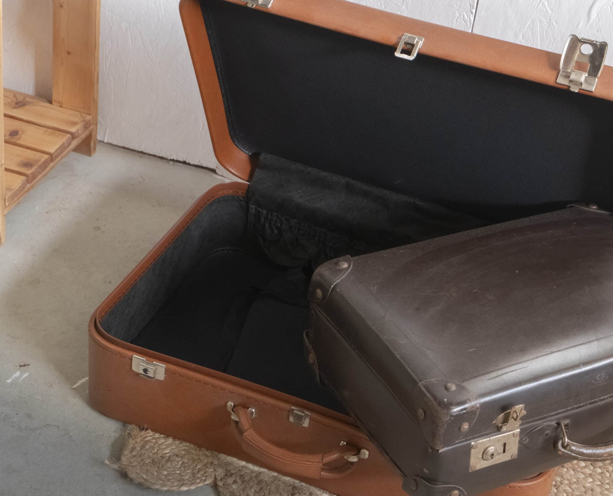 Superbe grande valise en imitation cuir, de très bonne qualité. L’intérieur est en excellent état, ce qui est assez rare pour ce type de pièce, la rendant idéale aussi bien pour un usage décoratif que pour du rangement.