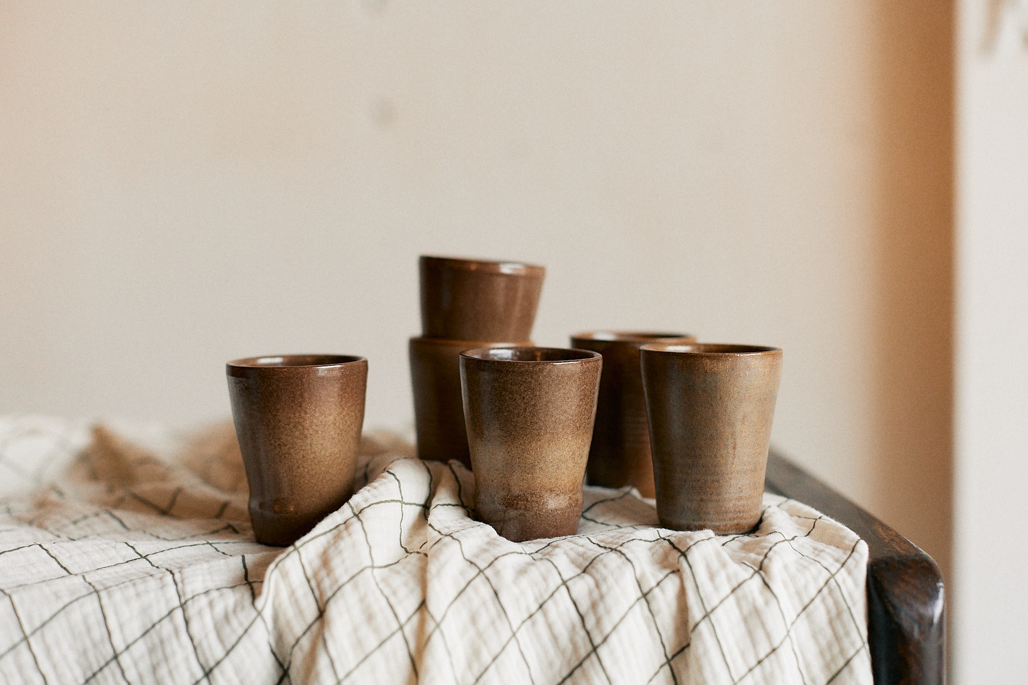 6 tasses à café, ou gobelets à eau, en grès vintage verrine …