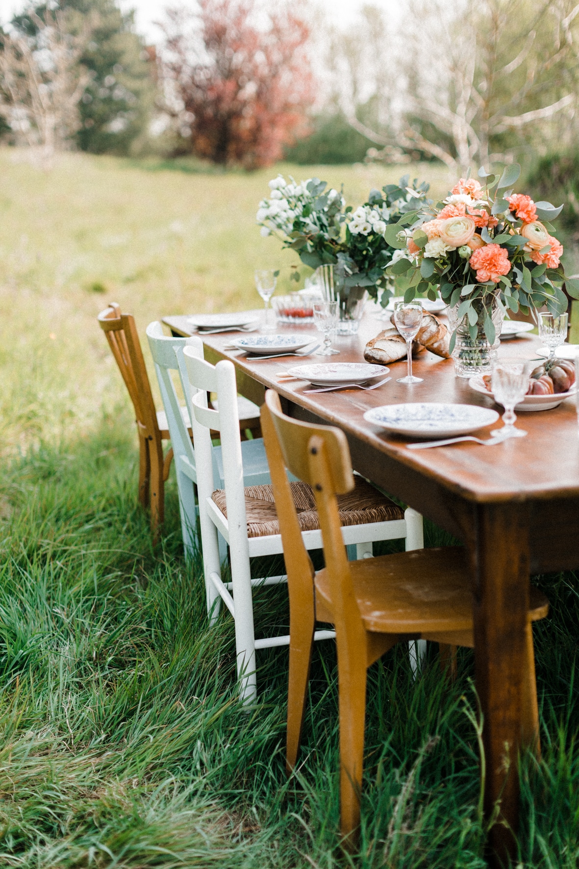 Assiettes vintage plates GIEN avec un joli décor bleu de paysage et maison de campagne type chalet. Porcelaine blanches et bleues