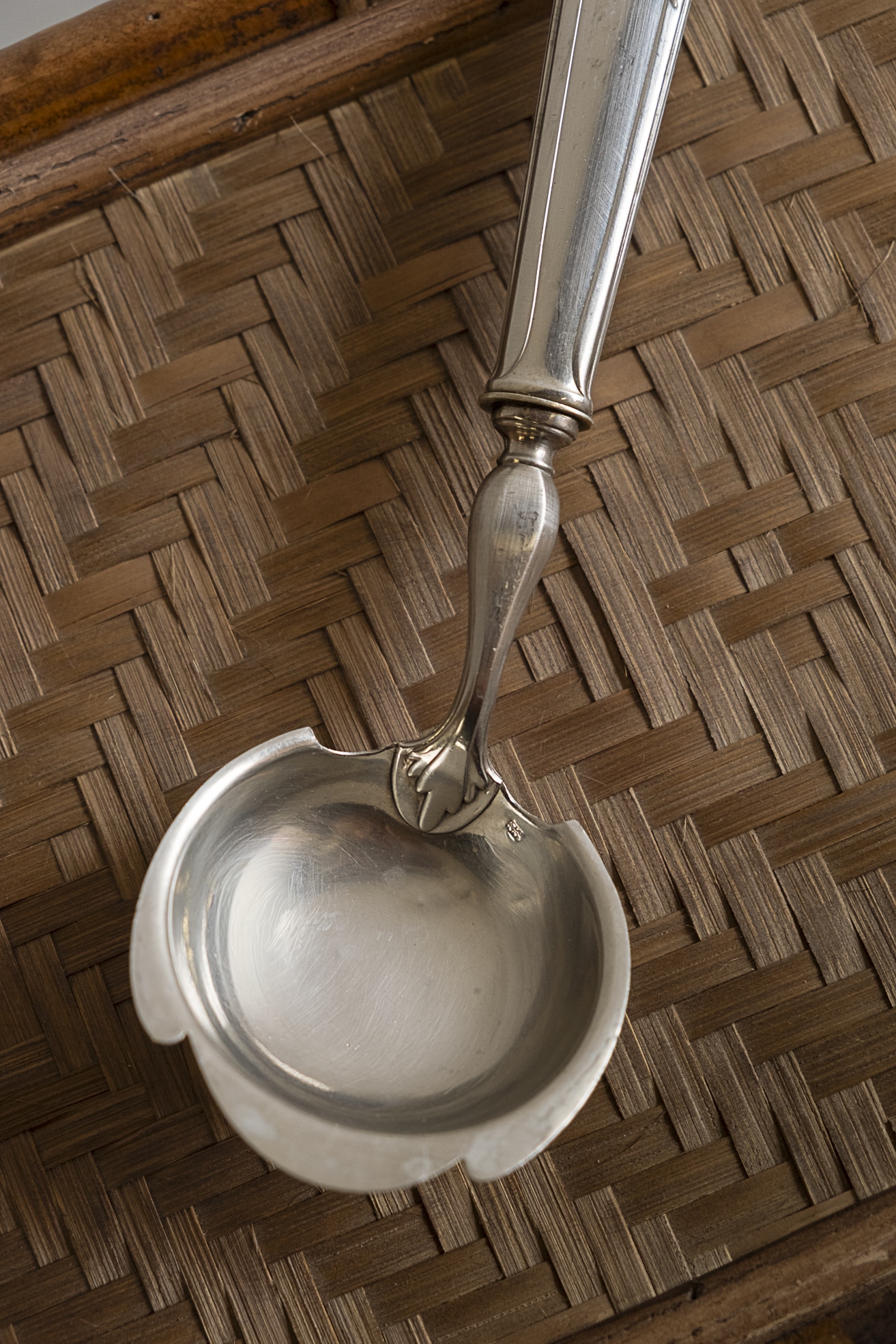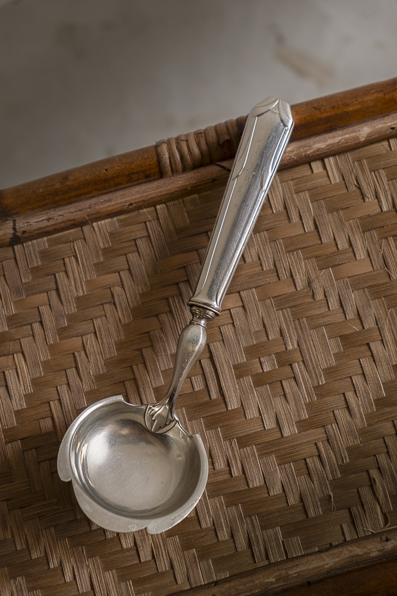 Louche en métal avec de très belles finitions et un travail délicat des détails. Le manche et le cuilleron présentent de jolis reliefs qui lui donnent beaucoup d’élégance.
