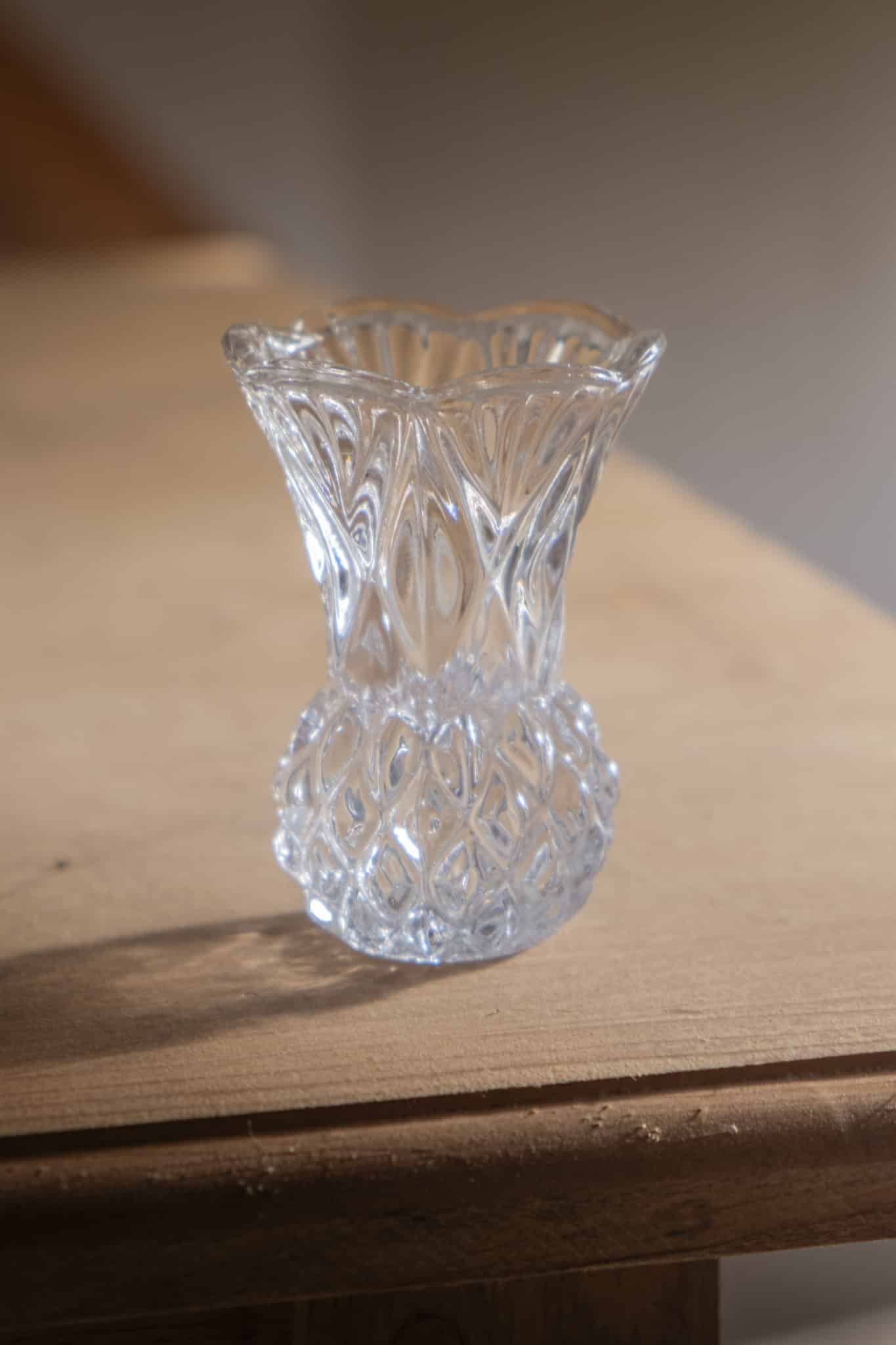 Ce petit vase en verre blanc ciselé, conserve l’élégance lumineuse propre aux objets anciens. Son relief délicat capte la lumière et met en valeur quelques fleurs fraîches ou séchées. « Amande » s’intègre facilement dans tous les intérieurs, apportant une touche douce et intemporelle.