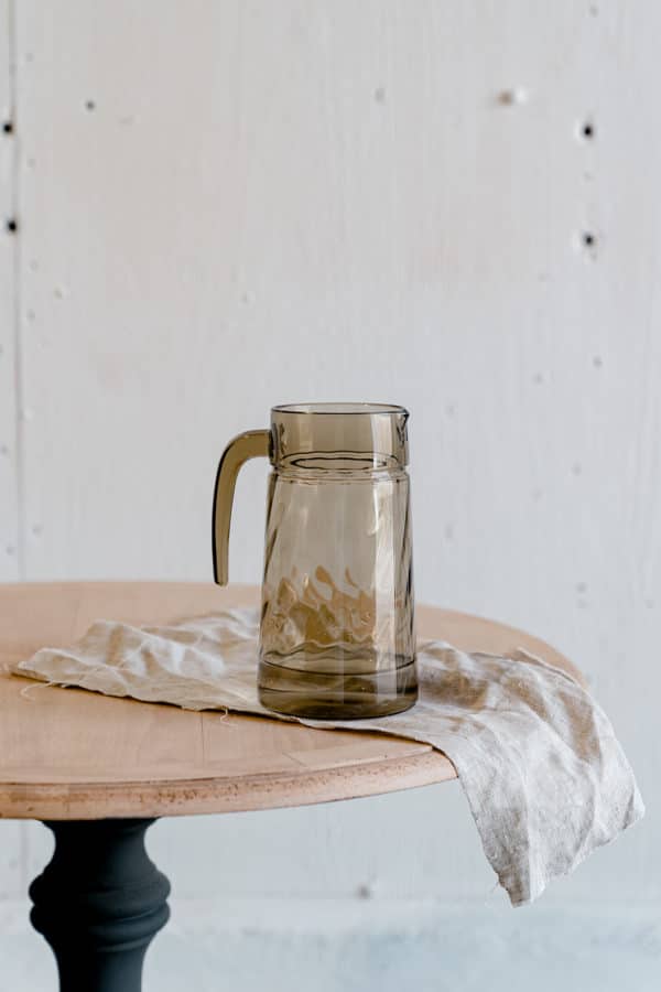 Joli pichet en verre fumé noir large . très vintage et prend la lumière d’une très jolie manière !