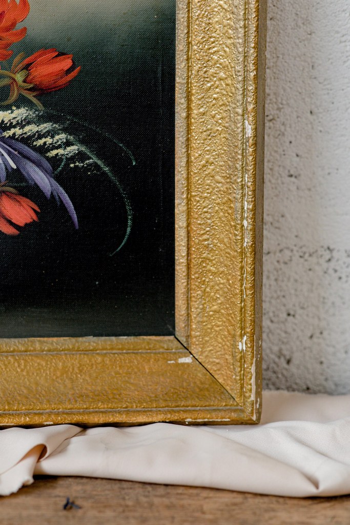 . Une toile à suspendre telle quelle ou à poser sur un meuble -> j’aime cet aspect noir et or :> Cadre résine, doré, patiné, quelques petits stigmates qui lui donne tout son charme (défauts mineurs). Bel état général.